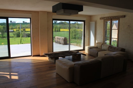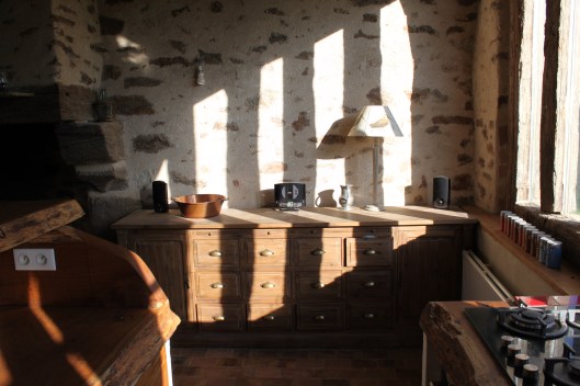 Le plus compliqué a été de faire les cloisons. Les murs en torchis étaient pour partie détruits. Il fallait ajouter des cloisons. une grosse poutre traversait la maison à 80cm au-dessus du sol. Nous avons donc refait du torchis pour boucher les trous. Fabriqué du colombage avec du vieux bois et rempli de béton de chanvre puis enduit à la chaux. Le résultat est très chaleureux.