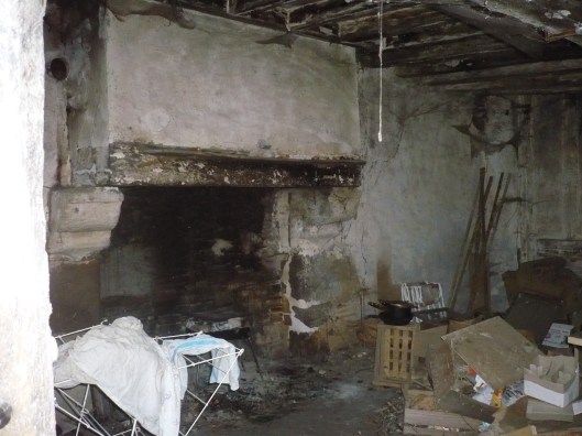 Le grenier a une belle cheminée, ce qui est original pour un grenier. Nous avons 2 explications autour de la même idée, que cette cheminée servait à faire sécher le sel. La maison est juste a côté d’un gué sur la rivière la Graine qui formait une frontière entre deux contés. la maison servait peut-être à collecter un droit de passage, en sel, qui était alors stocké et séché à l’étage. L’autre explication est que cette maison appartenait à l’Abbaye de Solesmes et que du sel y était aussi entreposé. Une fois remise en valeur, la cheminée donne beaucoup de charme à cette chambre.