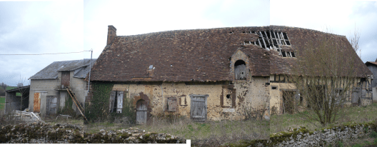 Le grenier était … dans son jus ! Murs en torchis et penchés, sol en terre avec beaucoup de dénivelé, quelques poutres fendues, un escalier qui s’apparentait plus à une échelle.